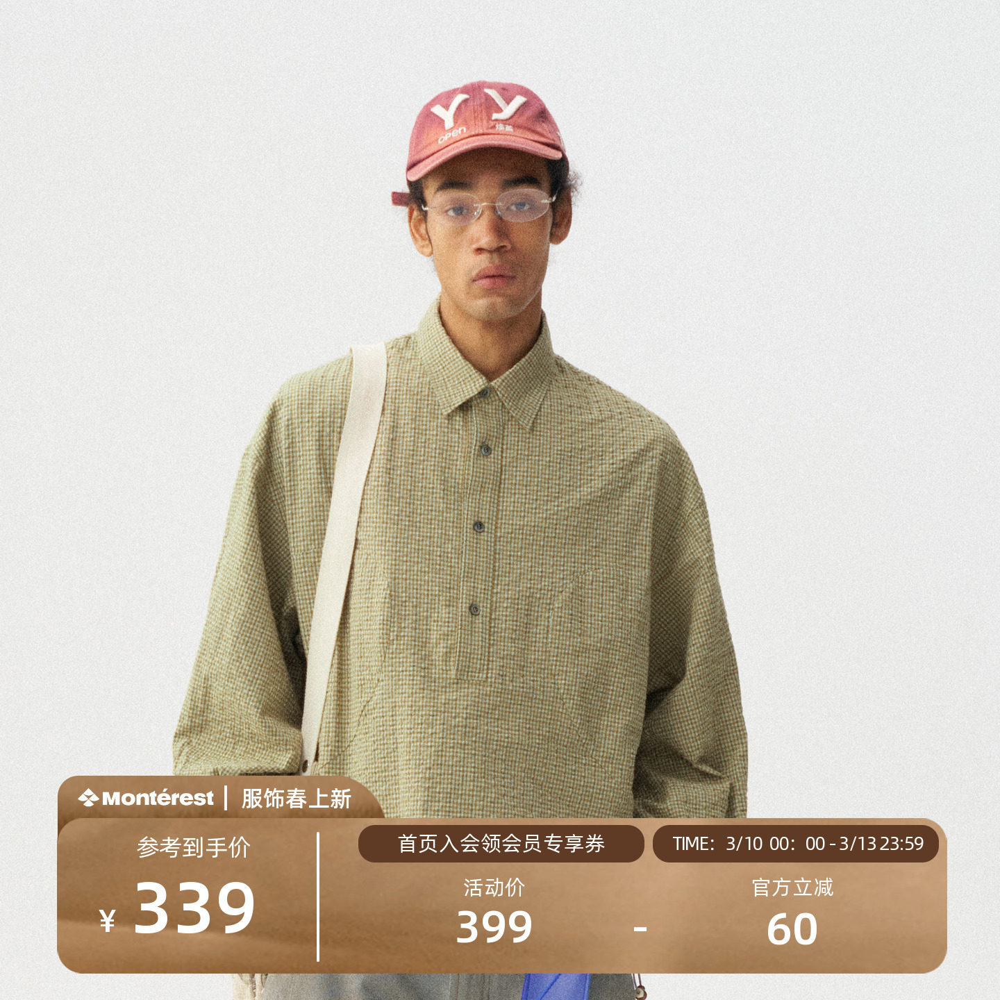 瞬时山野Monterest复古气球廓形半开领弧面分割宽松休闲衬衫衬衣