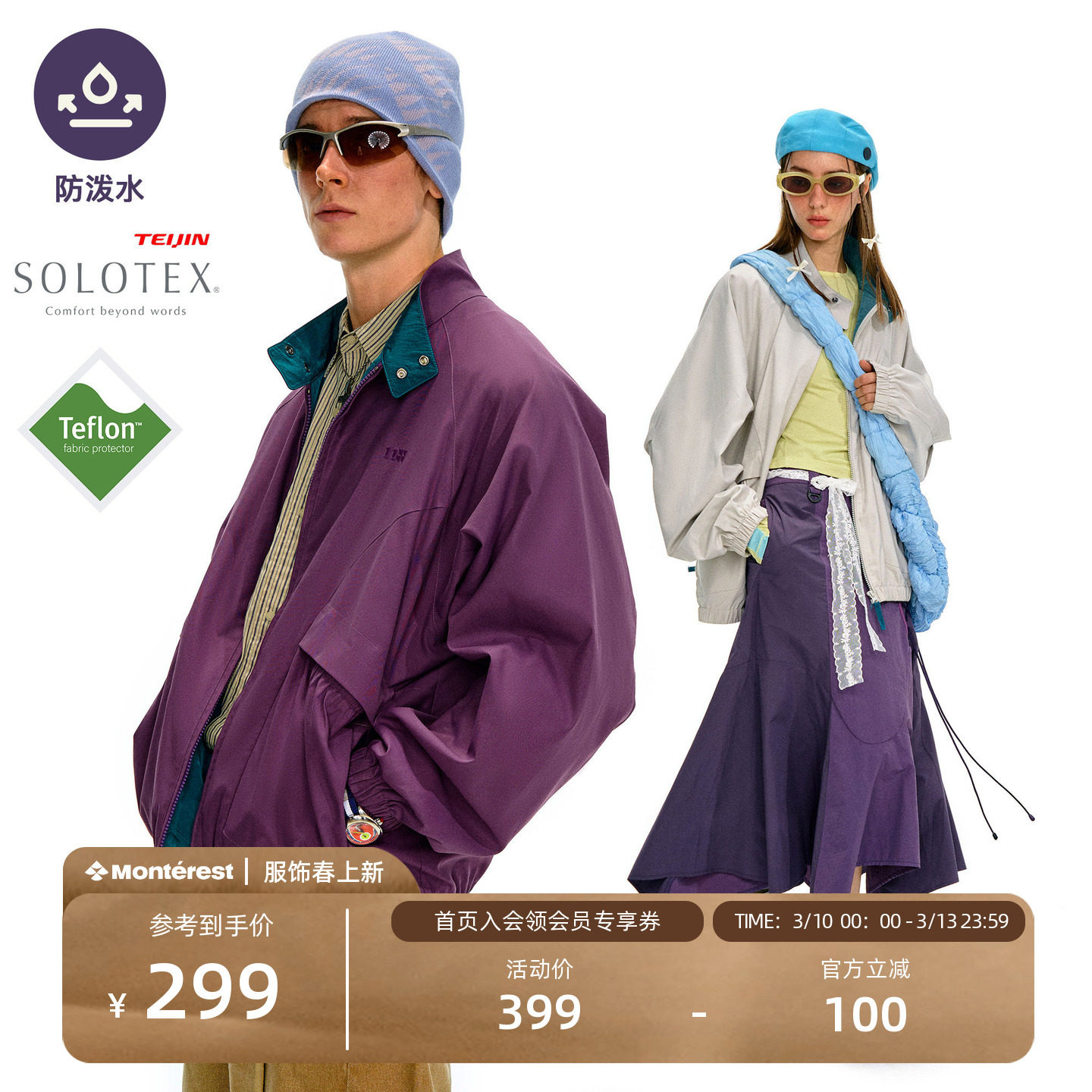 美特斯邦威男女同款夹克春季简洁舒适防水防风运动连帽功能性