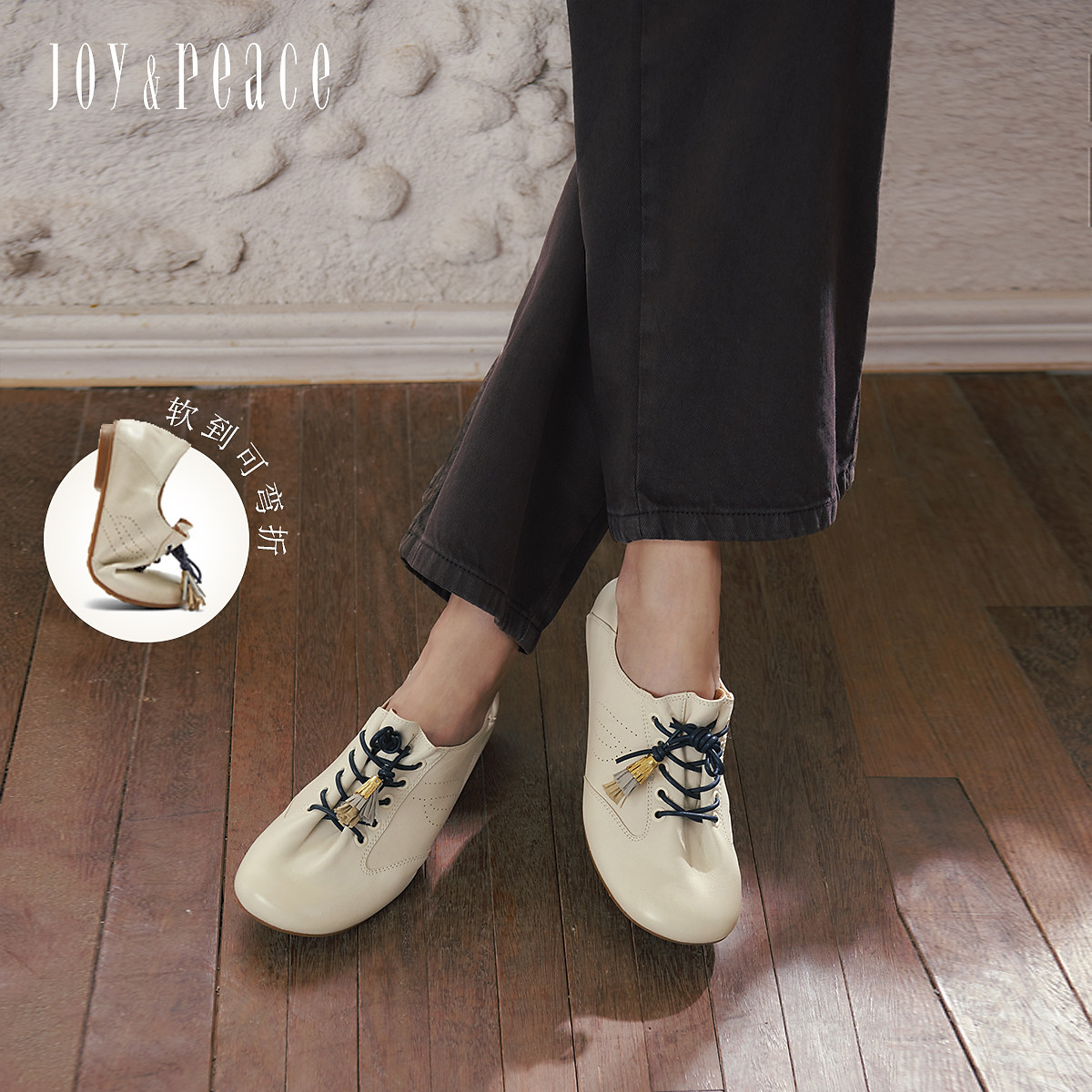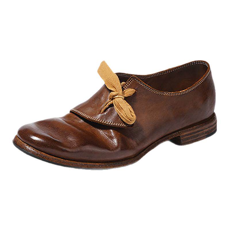 dreambox钧博高档轻奢女鞋水洗马皮乐福鞋法式复古绑带小皮鞋