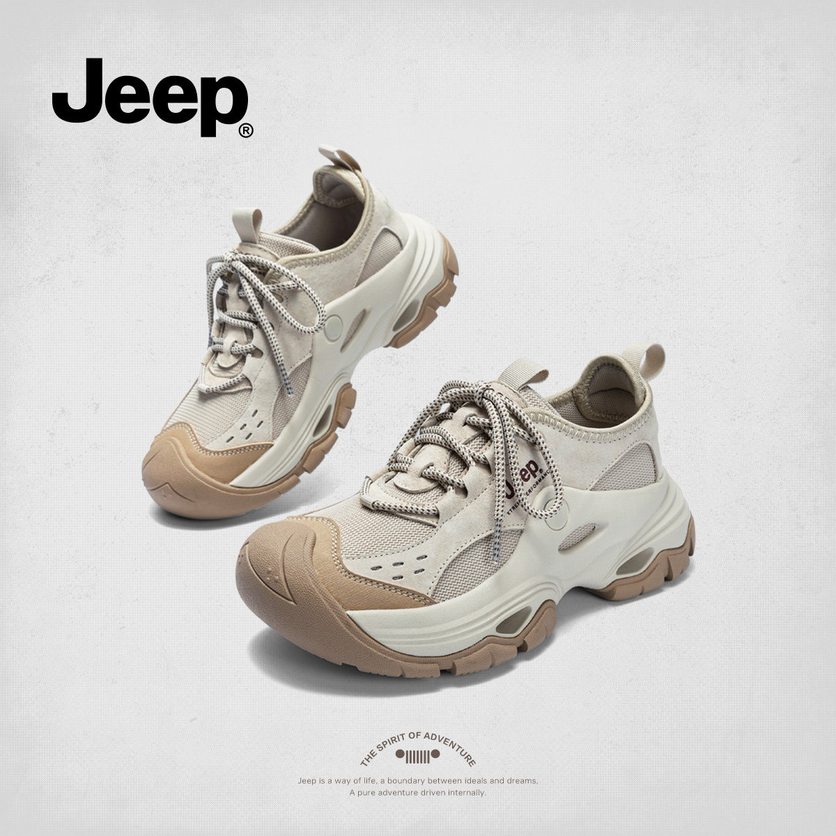 Jeep吉普厚底老爹鞋女增高2026春夏网面透气运动鞋女软底户外徒步