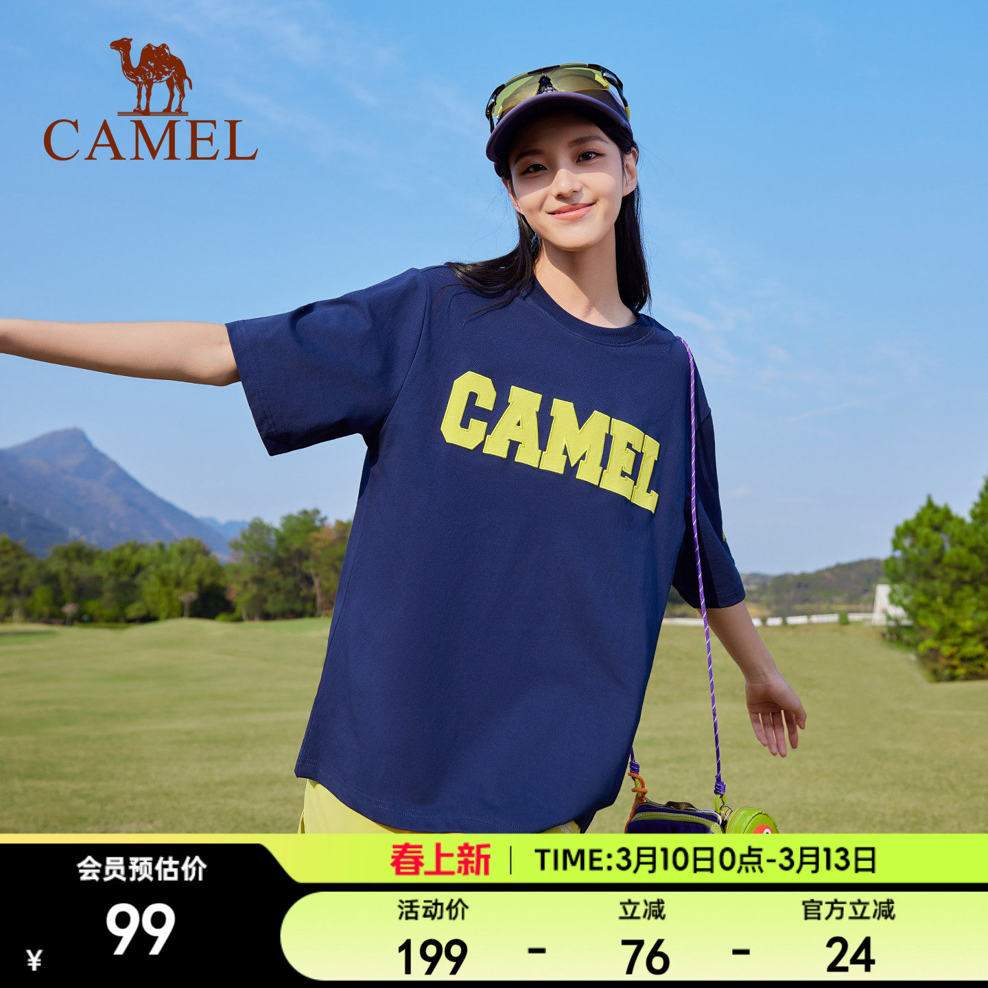 骆驼运动短袖T恤2026夏季新款棉感男女同款防水防晒防污宽松上衣