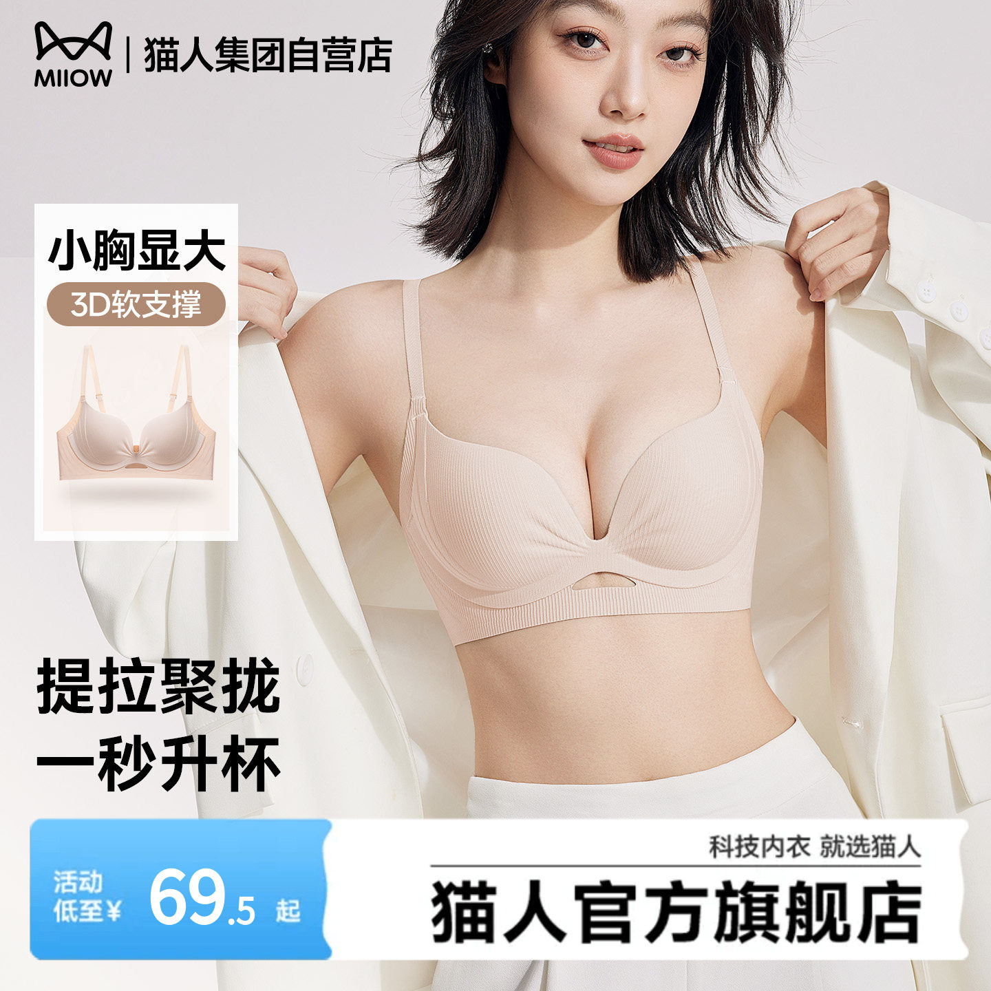 【明星甄选】猫人内衣女聚拢收副乳防下垂无痕粉底液乳胶杯文胸罩