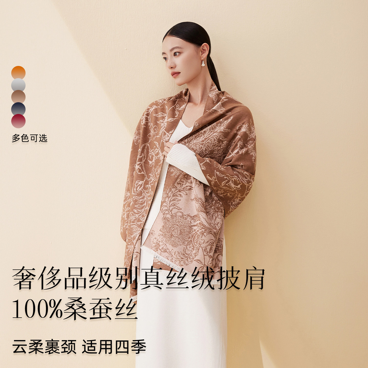 【生日礼物】万事利新款桑蚕丝围巾送妈妈拉绒披肩送礼保暖花间序