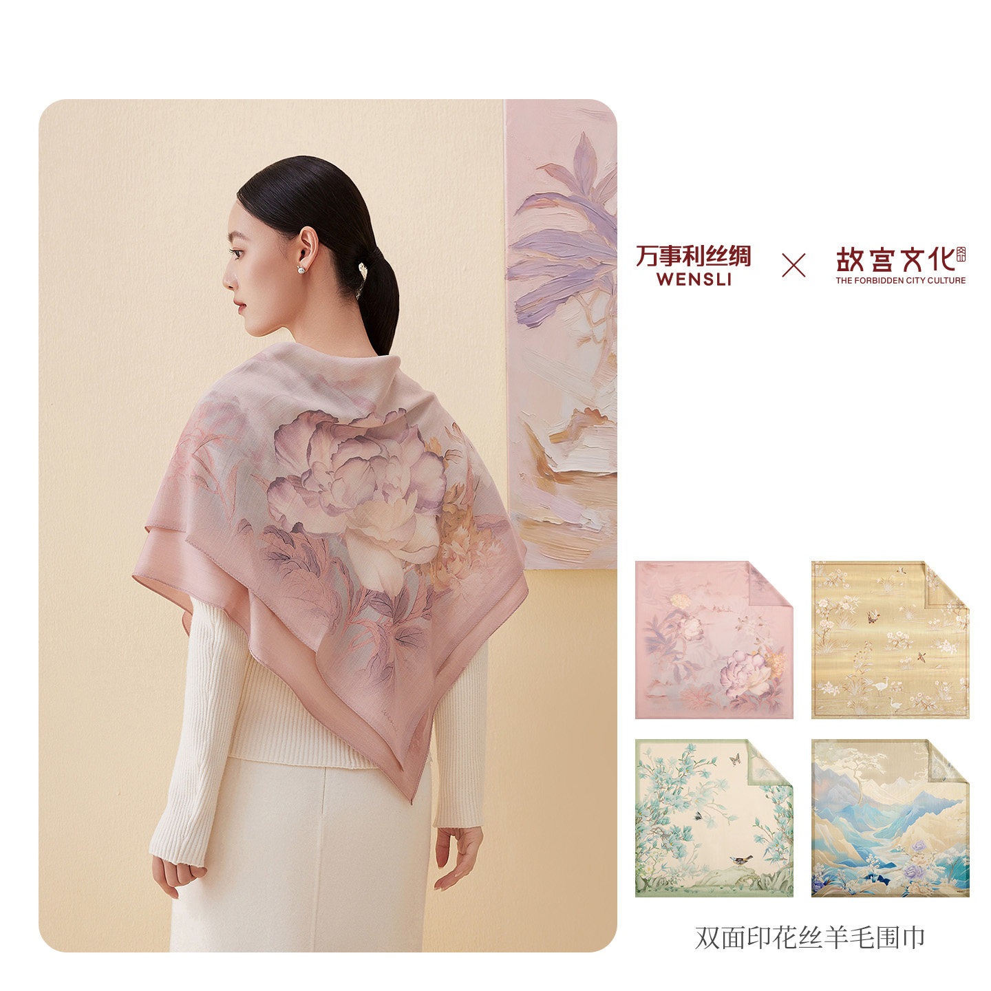 万事利×故宫文化联名人字纹丝羊毛围巾大披肩精致礼盒十二花神