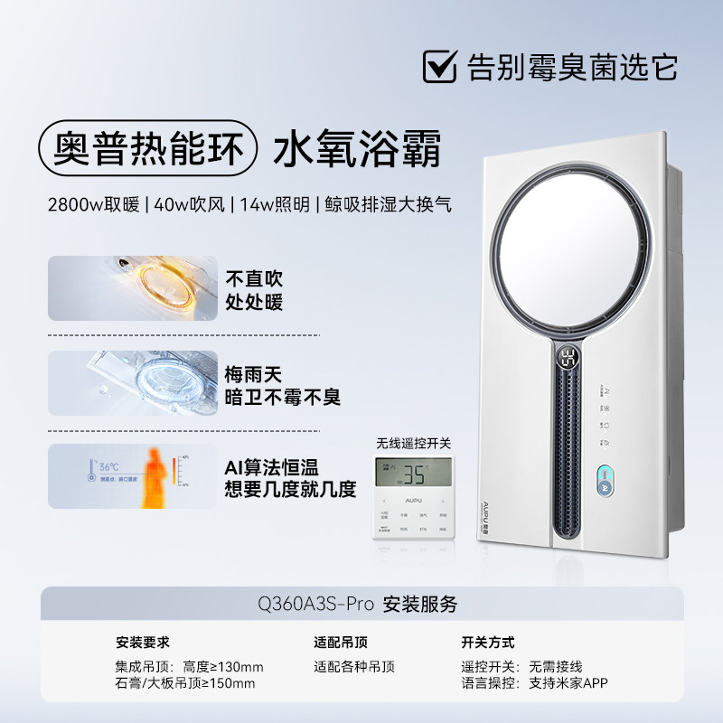 【TG】奥普官方旗舰店风暖浴霸卫生间除臭除菌照明排气扇一体