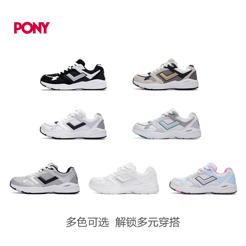 PONY男女同款老爹鞋运动跑步鞋复古网面休闲透气厚底